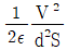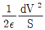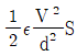 간격이 d(m)이고 면적이 S(m2)인 평행판 커패시터의 전극 사이에 유전율이 ε인 유전체를 넣고 전극 간에 V(V)의 전압을 가했을 때, 이 커패시터의 전극판을 떼어내는데 필요한 힘의 크기(N)는?