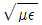 유전율 ε, 투자율 μ인 매질 내에서 전자파의 전파속도는?