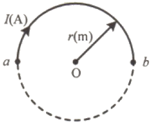 반지름이 r(m)인 반원형 전류 I(A)에 의한 반원의 중심(O)에서 자계의 세기(AT/m)는?