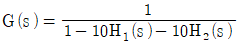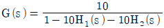 블록선도의 전달함수가 C(s)/R(s)=10과 같이 되기 위한 조건은?