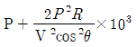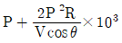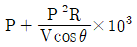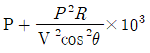 단상 2선식 배전선로의 말단에 지상역률 cosθ인 부하 P(kW)가 접속되어 있고 선로말단의 전압은 V(V)이다. 선로 한 가닥의 저항을 R(Ω)이라 할 때 송전단의 공급전력(kW)은?