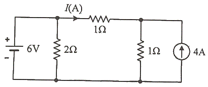 회로에서 저항 1Ω에 흐르는 전류 I(A)는?