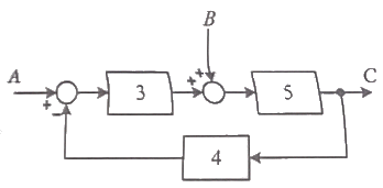 그림의 블록선도와 같이 표현되는 제어시스템에서 A=1, B=1일 때, 블록선도의 출력 C는 약 얼마인가?