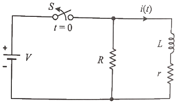 정상상태에서 t=0초인 순간에 스위치 S를 열었다. 이 때 흐르는 전류 i(t)는?
