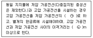 85 하나 또는 복합하여 시설하여야 하는 접지극의 방법으로 틀린 것은? 86 옥내 배선공사 중 반드시 절연전선을 사용하지 않아도 되는 공사방법은? (단, 옥외용 비닐절연전선은 제외한다.) 87 지중 전선로를 직접 매설식에 의하여 차량 기타 중량물의 압력을 받을 우려가 있는 장소에 시설하는 경우 매설 깊이는 몇 m이상으로 하여야 하는가? 88 돌침, 수평도체, 메시도체의 요소 중에 한 가지 또는 이를 조합한 형식으로 시설하는 것은? 89 변전소의 주요 변압기에 계측장치를 시설하여 측정하여야 하는 것이 아닌 것은? 90 풍력터빈에 설비의 손상을 방지하기 위하여 시설하는 운전상태를 계측하는 계측장치로 틀린 것은? 91 일반 주택의 저압 옥내배선을 점검하였더니 다음과 같이 시설되어 있었을 경우 시설기준에 적합하지 않은 것은? 92 사용전압이 170kV 이하의 변압기를 시설하는 변전소로서 기술원이 상주하여 감시하지는 않으나 수시로 순회하는 경우, 기술원이 상주하는 장소에 경보장치를 시설하지 않아도 되는 경우는? 93 특고압 가공전선로의 지지물로 사용하는 B종 철주, B종 철근콘크리트주 또는 철탑의 종류에서 전선로의 지지물 양쪽의 경간의 차가 큰 곳에 사용하는 것은? 94 전식방지대책에서 매설금속체측의 누설전류에 의한 전식의 피해가 예상되는 곳에 고려하여야 하는 방법으로 틀린 것은? 95 시가지에 시설하는 사용전압 170kV 이하인 특고압 가공전선로의 지지물이 철탑이고 전선이 수평으로 2 이상 있는 경우에 전선 상호간의 간격이 4m 미만인 때에는 특고압 가공전선로의 경간은 몇 m 이하이어야 하는가? 96 전압의 종별에서 교류 600V는 무엇으로 분류하는가?