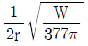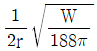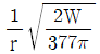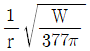 방송국 안테나 출력이 W[W]이고 이로부터 진공 중에 r[m] 떨어진 점에서 자계의 세기의 실효치는 약 몇 [A/m]인가?