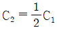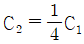 정전용량이 C1이고, V1의 전압에서 Qr의 무효전력을 발생하는 콘덴서가 있다. 정전용량을 변화시켜 2배로 승압된 전압(2V1)에서도 동일한 무효전력 Qr을 발생시키고자 할 때, 필요한 콘덴서의 정전용량 C2는?