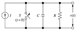회로에서 t = 0초일 때 닫혀 있는 스위치 S를 열었다. 이때
