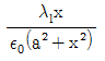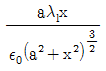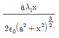 진공 중에 균일하게 대전된 반지름 a[m]인 선전하 밀도 λl[C/m]의 원환이 있을 때, 그 중심으로부터 중심축상 x[m]의 거리에 있는 점의 전계의 세기는 몇 V/m 인가?