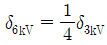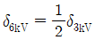 배전선로의 전압을 3kV에서 6kV로 승압하면 전압강하율(δ)은 어떻게 되는가? (단, δ3kV는 전압이 3kV일 때 전압강하율이고, δ6kV는 전압이 6kV일 때 전압강하율이고, 부하는 일정하다고 한다.)