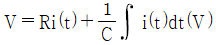 RC 직렬회로에서 직류전압 V(V)가 인가되었을 때, 전류 i(t)에 대한 전압 방정식(KVL)이