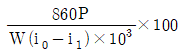 증기터빈 출력을 P(kW), 증기량을 W(t/h), 초압 및 배기의 증기 엔탈피를 각각 i0, i1(kcal/kg)이라 하면 터빈의 효율 ηT(%)는?