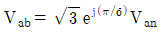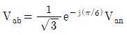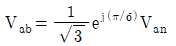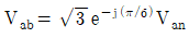 Y 결선의 평형 3상 회로에서 선간전압 Vab와 상전압 Van의 관계로 옳은 것은? (단,