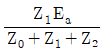 중성점 직접접지방식의 발전기가 있다. 1선 지락 사고 시지락전류는? (단, Z1, Z2, Z3는 각각 정상, 역상, 영상 임피던스이며, Ea는 지락된 상의 무부하 기전력이다.