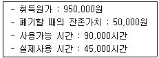 다음 조건에 해당하는 기계톱의 작업시간비례법에 의한 감가상각비는?