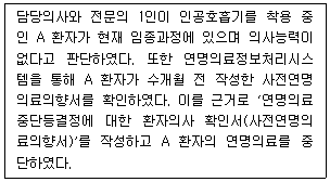 다음 사례에서 환자의 의사를 확보하기 위해 적용한 표준은?