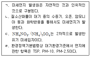 미세먼지에 대한 설명으로 옳은 것만을 모두 고르면?
