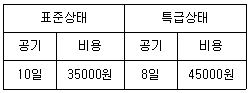 공사 기간의 단축과 연장은 비용경사(cost slope)를 고려하여 하게 되는데 다음 표를 보고 비용 경사를 구하면?