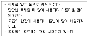아래 표에서 설명하고 있는 목재의 종류로 옳은 것은?