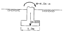 아래 그림과 같은 폭(B) 1.2m, 길이(L) 1.5m인 사각형 얕은 기초에 폭(B) 방향에 대한 편심이 작용하는 경우 지반에 작용하는 최대압축응력은?