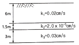 그림과 같이 3개의 지층으로 이루어진 지반에서 토층에 수직한 방향의 평균 투수계수(kv)는?