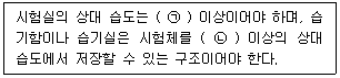 아래는 길모어 침에 의한 시멘트의 응결시간 시험방법(KS L 5103)에서 습도에 대한 내용이다. 아래의 ( ) 안에 들어갈 내용으로 옳은 것은?