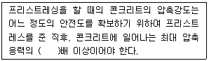 프리스트레싱할 때의 콘크리트 강도에 대한 아래 설명에서 ( )안에 알맞은 수치는?
