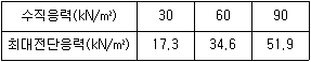 사질토에 대한 직접 전단시험을 실시하여 다음과 같은 결과를 얻었다. 내부마찰각은 약 얼마인가?
