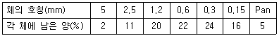 잔골재에 대한 체가름 시험을 한 결과가 아래의 표와 같을 때 조립률은? (단, 10mm이상 체에 잔류된 잔골재는 없다.)