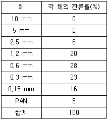어떤 모래를 체가름 시험한 결과 다음 표를 얻었다. 이 때 모래의 조립률은?