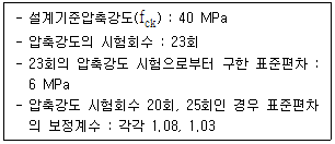 아래 표와 같은 조건에서 콘크리트의 배합강도를 결정하면?
