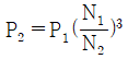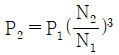 임펠러의 직경이 동일할 때, 펌프의 상사법칙에서 동력(P)과 분당 회전수(N)의 관계식으로 옳은 것은? (단, P1은 N1일 때 동력, P2는 N2일 때 동력이다.)