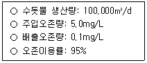 다음 조건의 오존처리 공정에서 잔류오존량(kg/d)은?