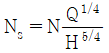 펌프의 비속도(Ns)를 나타내는 식은? (단, N은 분당 회전수, Q는 최고 효율점의 양수량, H는 최고 효율점의 전양정이다.)