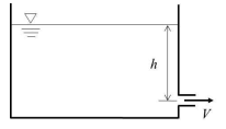 그림과 같은 물탱크에서 수심(h)이 4 m인 위치에 작은 오리피스가 설치되어 있다. 이 오리피스에서의 토출유속(m/s)은 약 얼마인가? (단, 오리피스의 유속계수는 0.7, 중력가속도는 9.8 m/s2이다.)