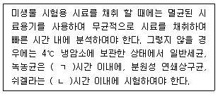 다음은 먹는물수질공정시험기준상 미생물 시험용 시료채취 및 보존에 관한 내용이다. ( )에 들어갈 내용을 바르게 나열한 것은?