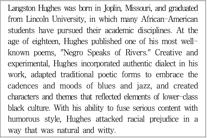 Hughes는 인종편견을 엄숙한 문체로 공격하였다.