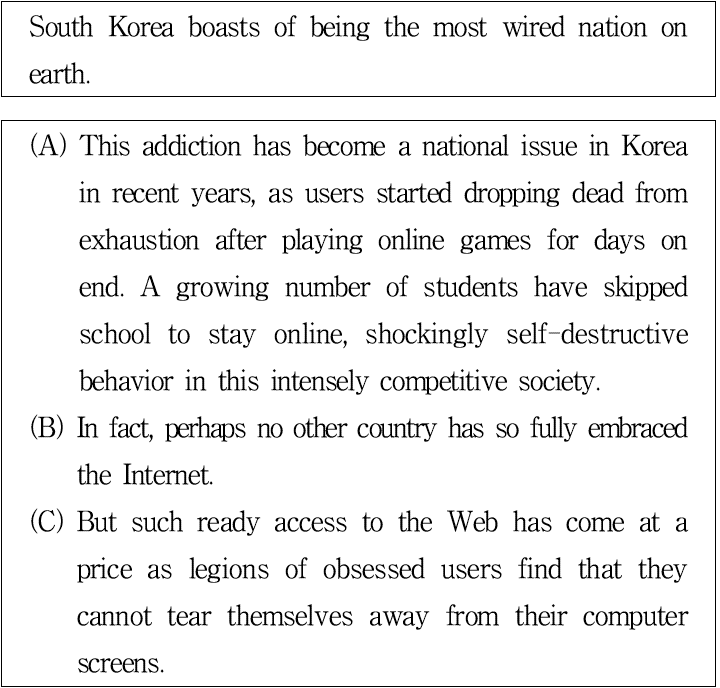 주어진 문장 다음에 이어질 글의 순서로 가장 적절한 것은?