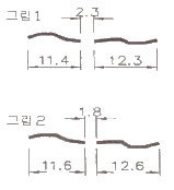 탐상검사 중 그림 1과 같은 선상 침투지시모양이 나타나서 이 지시모양을 제거한 후 여러 방법으로 다시 탐상한 결과 그림 2와 같은 지시모양을 최종 결과로 얻었다. 이 지시에 대하여 옳게 분류한 것은? (단, KS B 0816을 기준으로 분류하며, 그림의 숫자 단위는 mm 이다. )