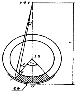 강 용접 이음부터 방사선 투과 시험 방법(KS B 0845)에서 아래 그림과 같이 강관의 원둘레 용접 이음부를 2중벽 단일면 촬영방법에 의하여 전체 둘레를 촬영할 때, 2a = 30°일 경우 몇 매 이상의 촬영이 필요한가?