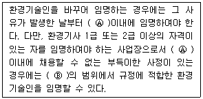 대기환경보전법령상 환경기술인의 임명기준에 관한 내용이다. ( )안에 알맞은 말은? (단, 1급은 기사, 2급은 산업기사와 동일)