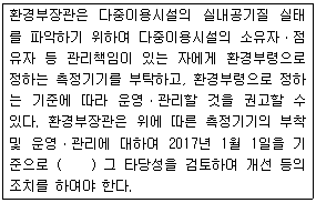 다음은 실내공기질 관리법상 측정기기의 부착 및 운영ㆍ관리와 규제의 재검토 사항이다. ( )안에 가장 적합한 것은?