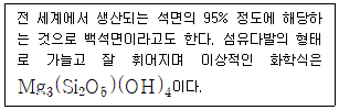 실내공기오염물질 중 석면의 위험성은 점점 커지고 있다. 다음에서 설명하는 석면의 분류에 해당하는것으?