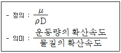 다음 내용과 관련 있는 무차원수는? (단, μ : 점성계수, ρ : 밀도, D : 확산계수)