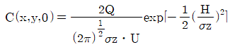 1시간에 10000대의 차량이 고속도로 위에서 평균시속 80km로 주행하며, 각 차량의 평균 탄화수소 배출률은 0.02g/sec이다. 바람이 고속도로와 측면 수직방향으로 5m/sec로 불고 있다면 도로지반과 같은 높이의 평탄한 지형의 풍하 500m 지점에서의 지상오염농도는? (단, 대기는 중립상태이며 풍하 500m에서의 σz= 15m,