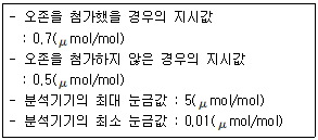 흡광차분광법을 사용하여 아황산가스를 분석할 때 간섭성분으로 오존(O3)이 존재할 경우 다음 조건에 따른 오존의 영향(%)을 산출한 값은?