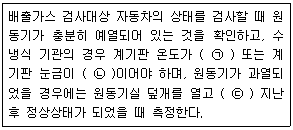 다음은 대기환경보전법령상 운행차정기검사의 방법 및 기준에 관한 사항이다. ( )안에 알맞은 것은?