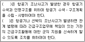 다음은 「재난 및 안전관리 기본법」상 항공기 등 조난사고 시의 긴급구조에 대한 설명이다. 빈칸에 순서대로 알맞게 들어간 것은?