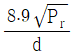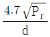 방사전력이 Pr[W]인 반파장 다이폴 안테나에서 d[m] 떨어진 점의 전계강도[V/m]는?