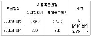 통신선로용 광케이블의 허용곡률반경에 대한 설명으로 괄호 안에 들어갈 알맞은 수치는?